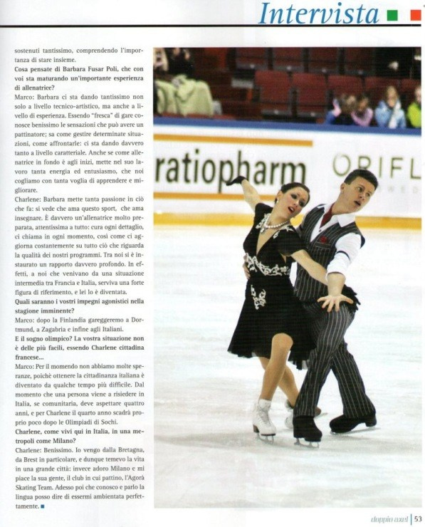 Я познакомилась наконец-то с Шарлен и Марко и их семьями. Просто на тот момент единожды снимала их на Finlandia Trophy 2011, и эти фото публиковались в итальянском журнале Doppio Axel.
