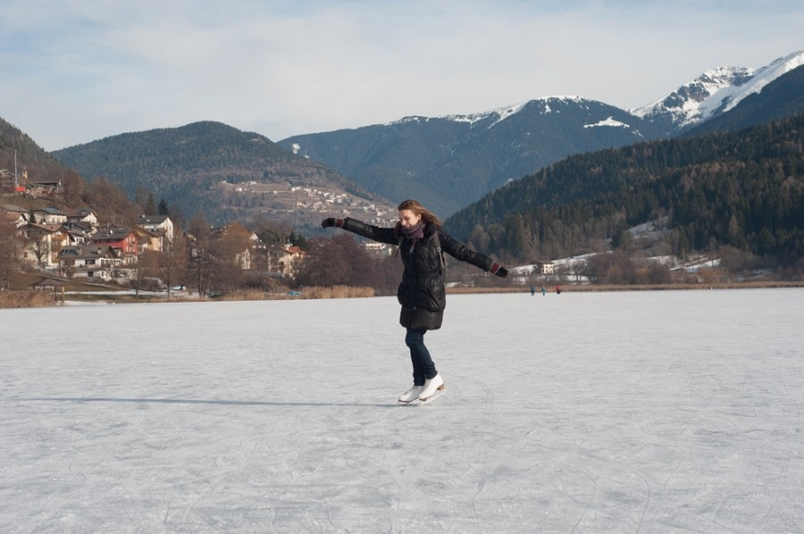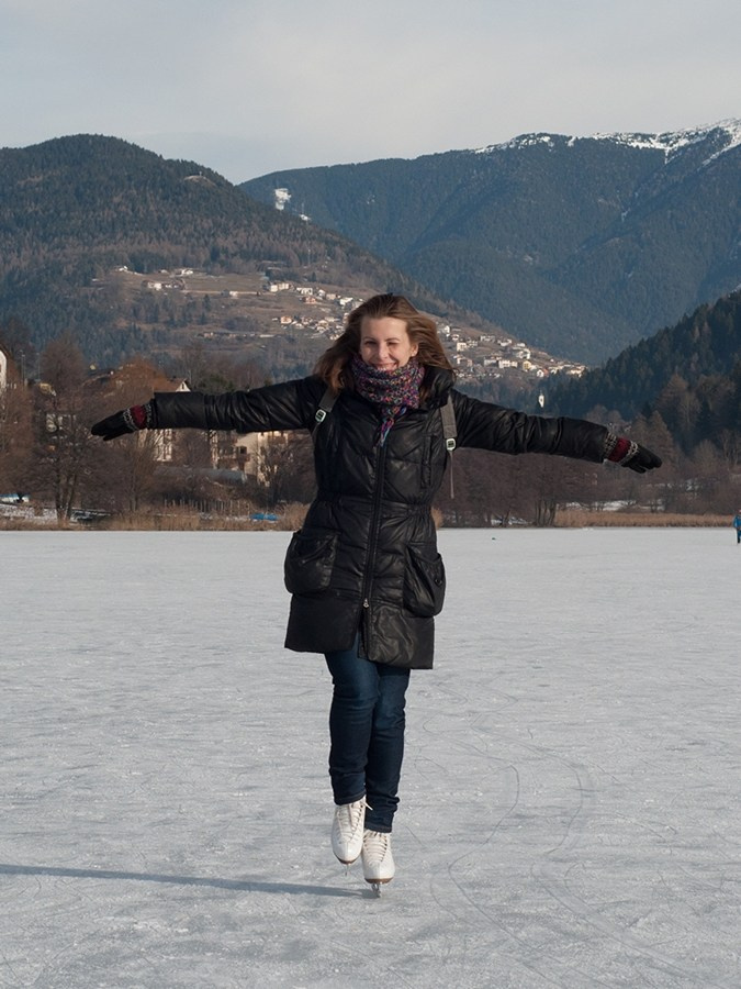 Зато погода в первое утро нового года была потрясающе солнечная. Мы ехали с друзьями на машине дальше, и у нас с собой были коньки. Говорю: «Айда кататься на озере!» — и решила не отказывать себе в удовольствии: коньки-то с собой, компания в машине — почему бы и нет.